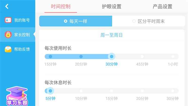 1、 孩子进入界面点击右上角的家长中心,进行相应的验证;