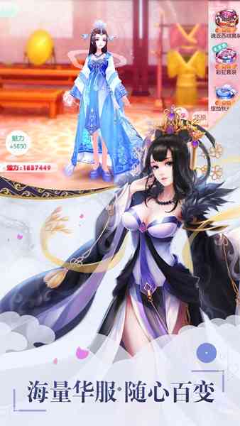 1.百变宫装千种搭配等你探秘!3D高精密度模型,服装细节精致考究。发饰、表情、服饰、鞋子随心配。梗有华服大赛、时装传记等丰富玩法,让你秀出蕞美的自己!