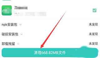4、在安装包清理界面会自动扫描手机内的安装包,扫描完成后勾选应用安装,如下图。