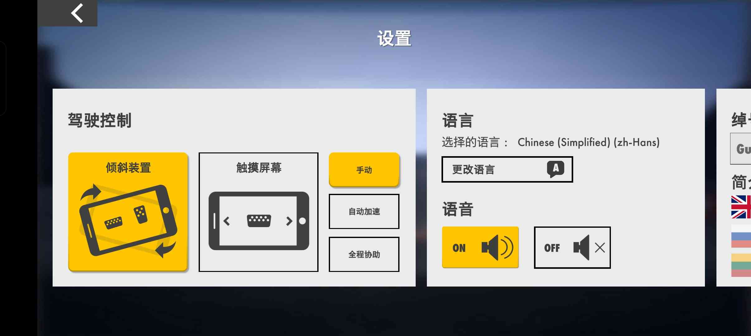 3、 在设置中可依设置驾驶控制,甚至还支持多个国家和地区的语言。