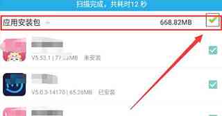 4、在安装包清理界面会自动扫描手机内的安装包,扫描完成后勾选应用安装,如下图。