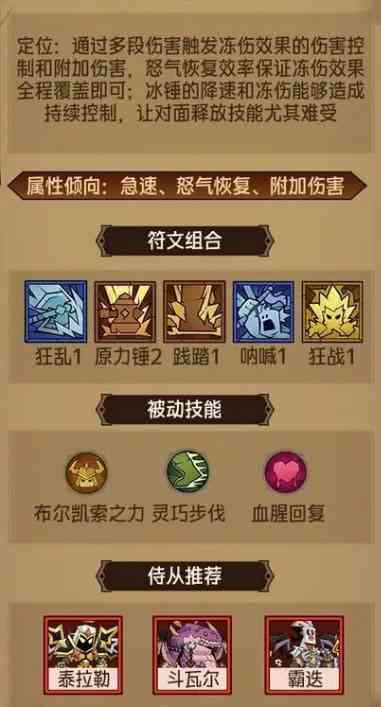 其他技能:狂战急速回能,冲锋突围单挑,集结回能连锤,狂战填补持续伤害。