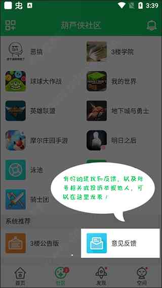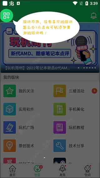 4、此外,如果你参与葫芦侠3楼的社区,那么点击“社区”即可进入,并如果觉得社区版块不过的话,还可自行添加