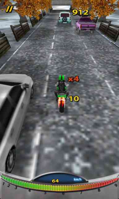 左右摇摆手机,控制你摩托车的方向,躲避公路上阻碍你的车辆。点击屏幕,就可以进行加速,增加游戏的刺激性。