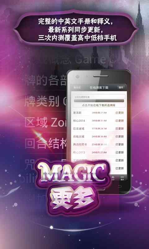 还有没有朋友在玩万智牌的,有的或者是想玩的朋友,就赶紧把小编的这款万智牌助手安装到自己的手机上去吧,它可以轻松的为万智牌的比赛和娱乐提供全方位的帮助和服务,让你玩的更加的尽兴!