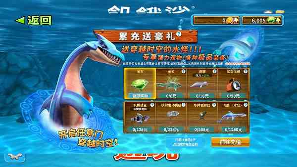 2.反复玩礁鲨攒钱,有耐心的可以等到锤头.虎鲨,然后开始选择一个强化,大白鲨非常强,也是最实用的,等到大白鲨就绝对可以开始强化了,然后用眼罩之类的道具开始刷钱即可,探索的区域都能到达了。