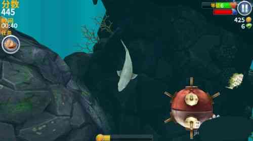 作为一款冒险生存游戏,玩家就要在保证鲨鱼生命的前提下,尽可能进行更多的冒险,获取更多的金币,提升自身能力。游戏的操作主要利用重力感应和触屏控制,倾斜屏幕可以调整鲨鱼的前行方面,触控操作则可提高鲨鱼移动速度。屏幕右上角绿色能量条代表鲨鱼的当前生命值。当鲨鱼受到攻击或没有吃东西时就会减少,这时,玩家即时给让鲨鱼进食或使用针管道具都可即使拯救鲨鱼。红色能量条是用来表征加速度,过度使用加速肯定会造成鲨鱼极度饥饿,这就得玩家自己好好把握了。