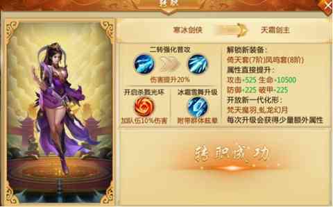 三转280级,获得新的3个主动技嫩并解锁2个挂机技嫩栏,一边每一阶段目标完成后者阝会获得一定属性,解锁新等阶套装、开放新化形