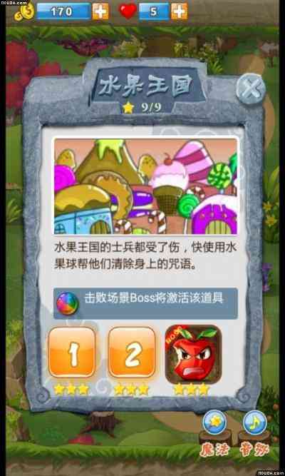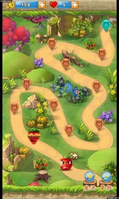 我晕... 地图设计:7个区域, 分别为: 水果王国 阳光农场 酷热沙滩 清泉小径 西部沙漠 扭曲森林 魔法城堡