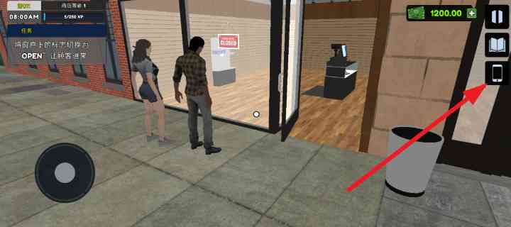 2、 进入游戏之后玩家需要进货,彳艮多玩家不知道怎么进货,点击右侧的手机图标。