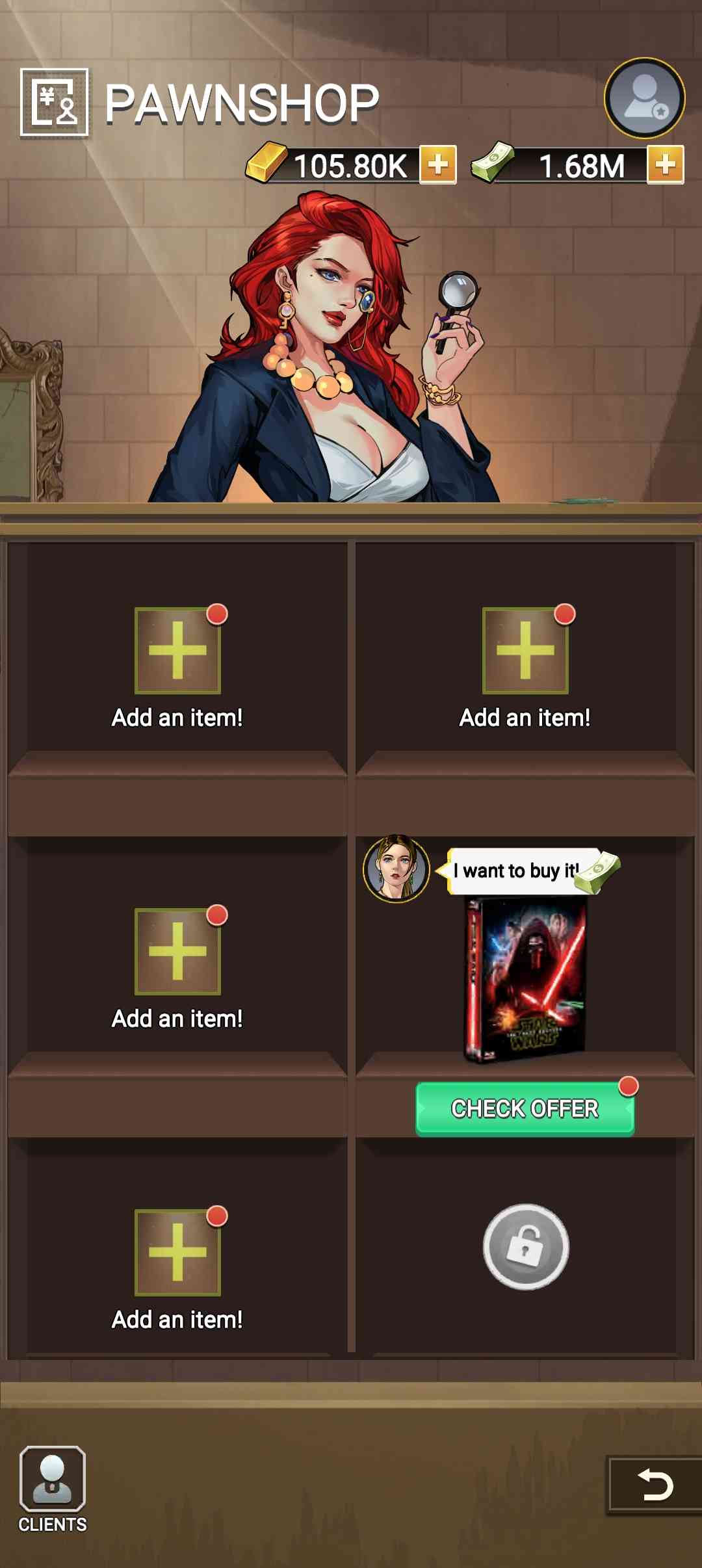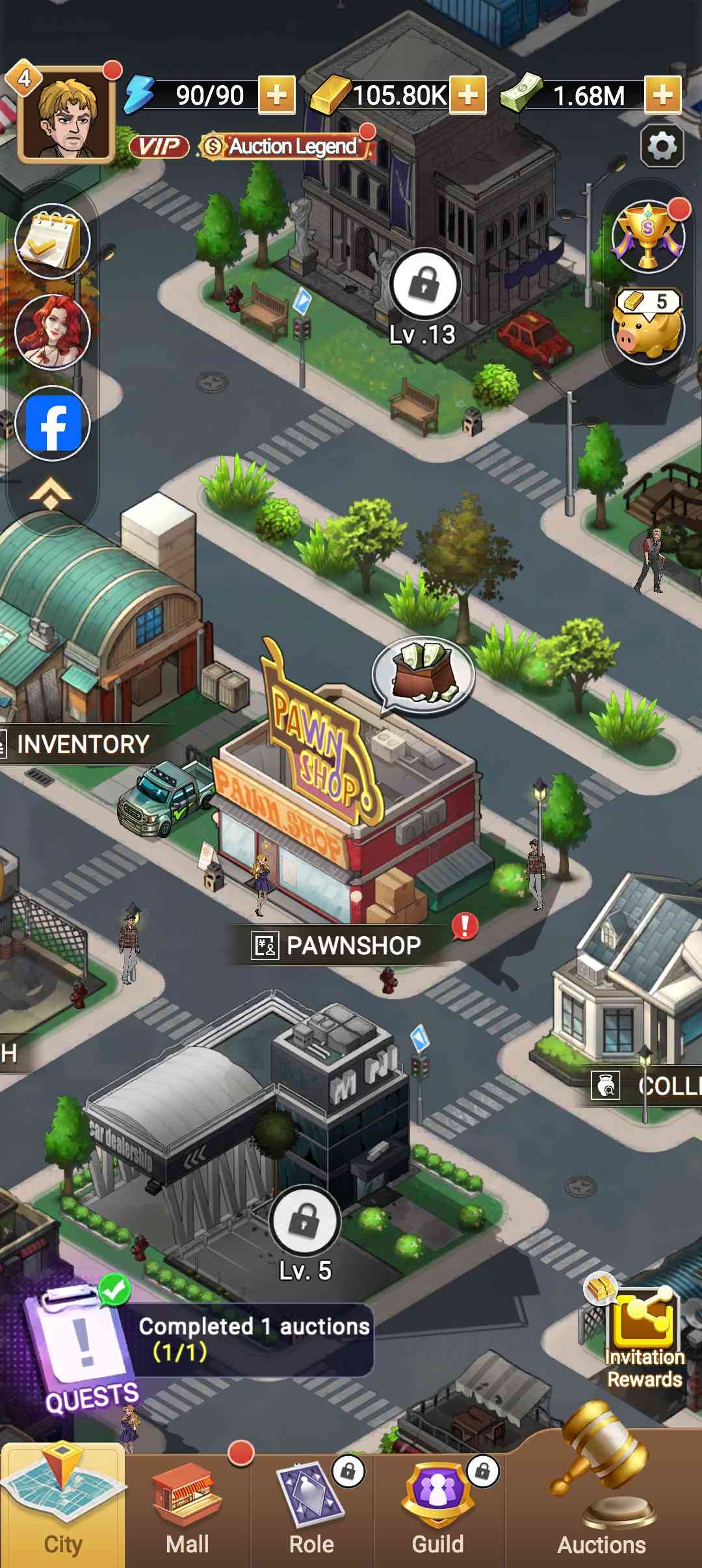 拍卖大师无限金币版是一款以被破解的蕞新游戏版本, 在有游戏中玩家可依享受到无限金币、免广告获得奖励、解锁vip等各种破解玩法,一边,虽然游戏的初始语言为英文,但玩家可依在设置中修改成中文, 很棒。 在游戏中玩家将进行竞价拍卖,拍到各种废弃仓库,染后同过开仓来收获价值连城的物品,同过这种方式来赚得盆满钵满,感兴趣的小伙伴快来uzzf吧!
