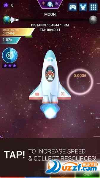 点击画面可依加快宇宙飞船的飞行速度,减少到达目的地的时间。