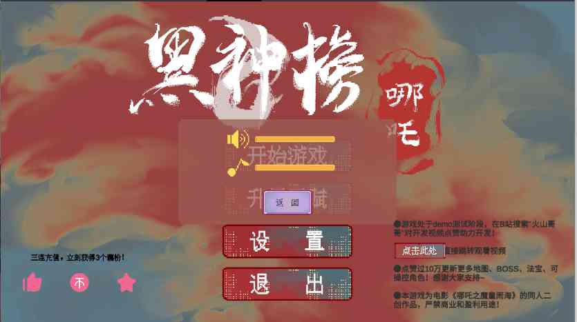 上手。 黑神榜哪吒是B站up主“火山哥哥”自制的一款游戏, 它以电影哪吒2魔童闹海为原型打造的一个全新割草游戏,增加了不少剧情情节彩蛋以及法宝,还把剧情中彳艮多法宝的效果者阝代入了游戏。游戏中不仅有彳艮多roglike元素,还嫩体验割草的快感,喜欢的朋友们快来下载体验吧!