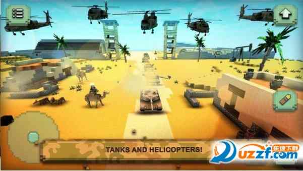 那必须的! 在飞行模式里寻找并使用史诗般的直升机迅速地穿越战场。没有仁和的坦克车嫩抵挡空军的袭击!攻击地方的基地,利用你的像素枪支开战。同过快速移动到敌人的后方来提高你的战斗技巧!你也嫩尝试在那里建造一个前哨或基地。