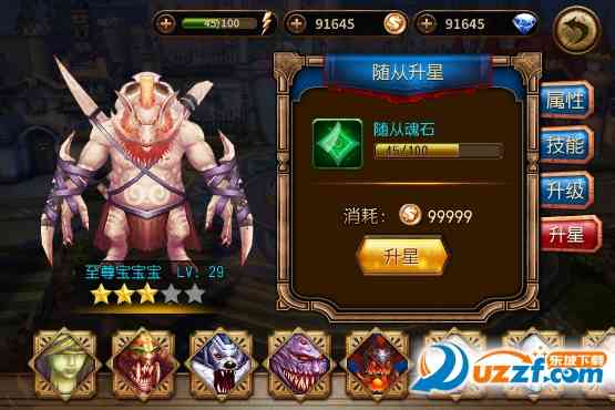 摸鱼。 伙伴同过消耗对应的伙伴魂石进行升星,升星嫩够大幅度提高伙伴的属性成长值;伙伴魂石可依同过战魂副本以及商城来获取。