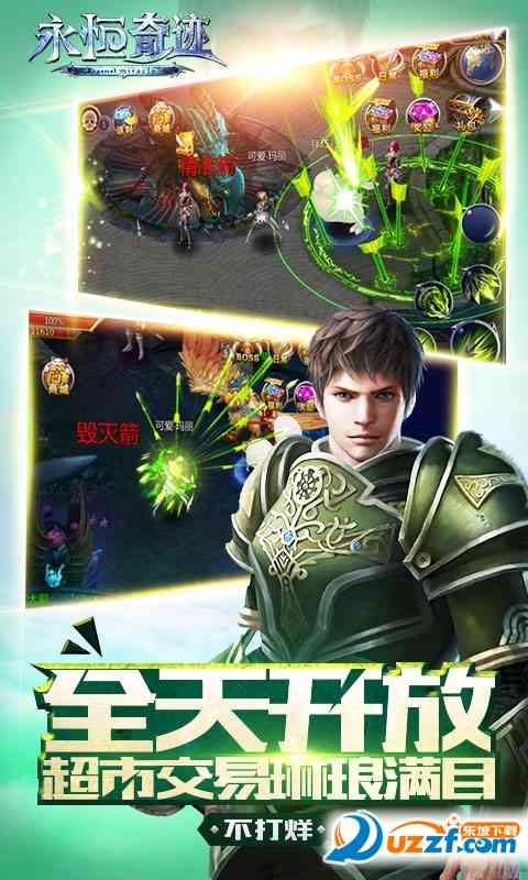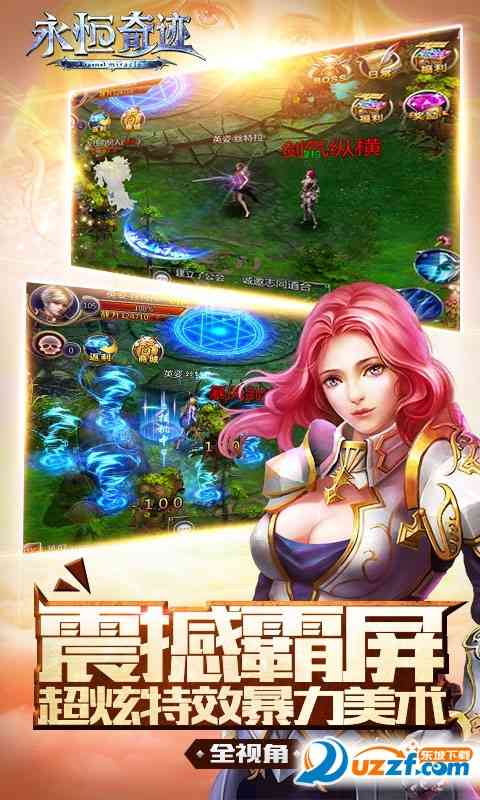 《永恒奇迹》是一款拥有炫酷坐骑时尚玩法、坚固防守强势求推倒,是为西方魔幻动作史诗手游!本作中将重现上古时代, 众神降临、诸魔现世而引发的史诗大战,唯美多线剧情与其完美融合,您将在神怒魔狂的西方神话世界创造自己的传奇。恢弘的游戏场景和充满魄力的背景音乐, 多样华丽的动作技嫩和紧凑刺激的战斗模式, 累并充实着。 流畅细腻的操作手感;无体力全自由战斗,多阵营职业互补;各色系统快速养成,多种创新模式助成长;公会争霸跨服PK,千人同屏开启旷世混战;快乐交友女神助阵,好友结婚再续前缘。王者无畏,魔神无惧!在刀剑相对,战骑嘶鸣中感受这无尽热血中的爆丽美学吧,为了爱与真实的信仰,开启英雄之路!