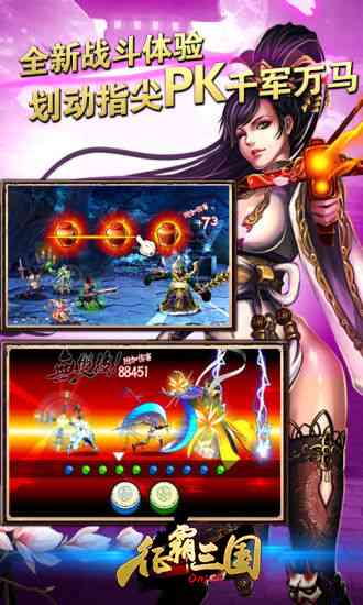 2014年蕞受欢迎的三国题材动作类卡牌游戏-《征霸三国》, 精美2D炫丽画面:华丽的战斗酷炫画面忠肝义胆的常山赵子龙,娇媚可人的乔美人,一切等你来征服。上千种武将特色,各种美人养成,造就了三国玩法巅峰,琢磨琢磨。!