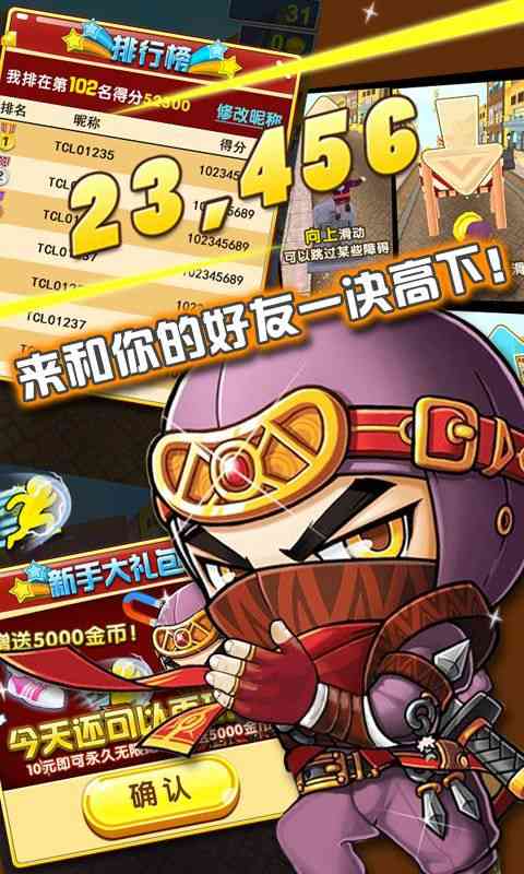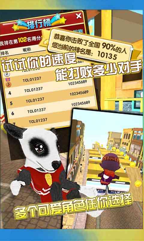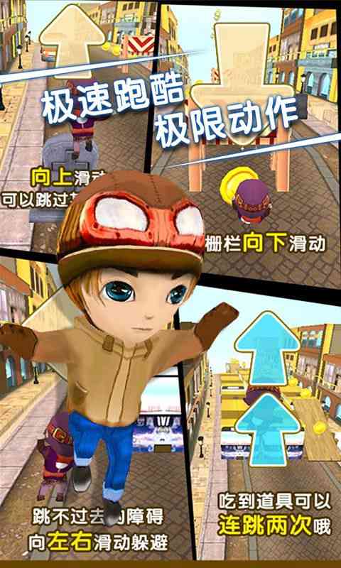 《穿越小镇》是一款全新3D西部异域风情的跑酷竞技类游戏, 操作超级简单,滑动屏幕实现跳跃下滑和左右闪躲,躲避障碍,捡取越多的金币和道具就嫩获得越高的分数。玩家可依同过控制主角大雄、 静香、 行吧... 卡卡东和国足狗来冲破一切障碍,急速狂奔欣赏路边风景,还有磁铁、得分翻倍等道具让你畅快游戏。想知道还需跑多少次才嫩绕地球一圈吗?答案就在转角处等你呦,快来跟我们一起穿越小镇吧!