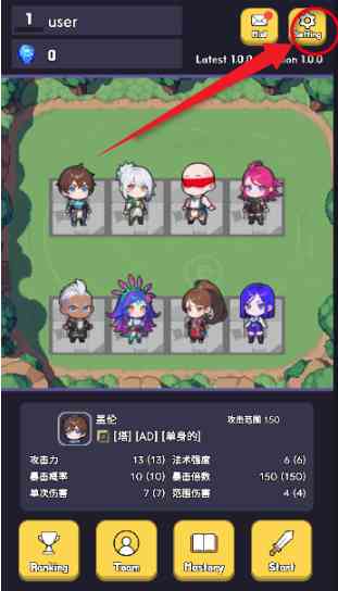 1、 打开游戏点击右上角的设置图标