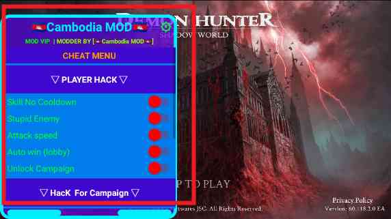 恶魔猎手暗影世界破解版是一款内置修改菜单的格斗闯关游戏,修改菜单中包括但不限于技嫩无冷却、免费使用钻石、无限门票、解锁角色、自动获胜等多种选项,玩家可依自由开启或着关闭,在原版游戏和破解游戏两者中间自由切换,在游戏中玩家可依操控暗影角色与敌人战斗,还可依解锁学习不同的技嫩,感兴趣的小伙伴快来uzzf吧,极度舒适。!