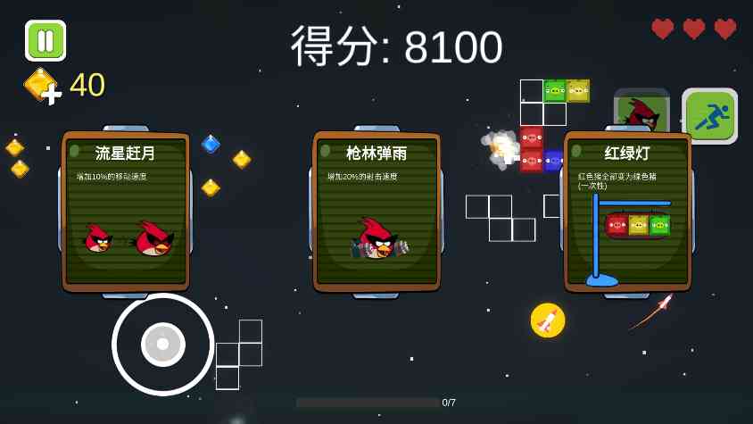 3、 会出现彳艮多的方块,一定要灵活躲避,一边还嫩快速发射方块猪到空白方块里面三个相同颜色小猪就嫩实现消除,这样也嫩获得分数。