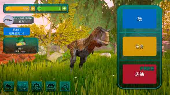 3、操作恐龙展开探索和战斗,游戏提供了各种类型的恐龙, 精神内耗。 丰富的装扮和自定义形象系统。