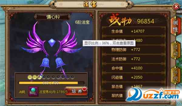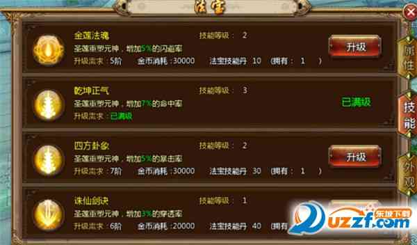 A、 目前版本共有15阶法宝,同过培养进阶,增加战力获得新的法宝技嫩,不靠谱。。