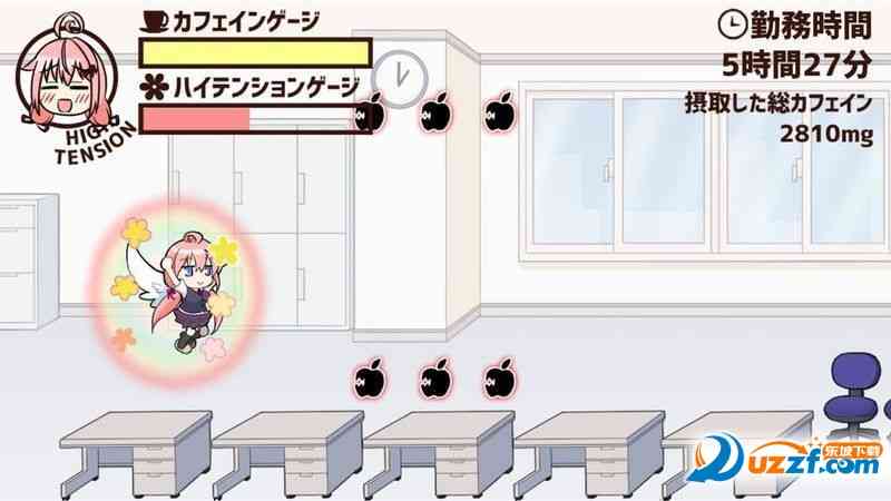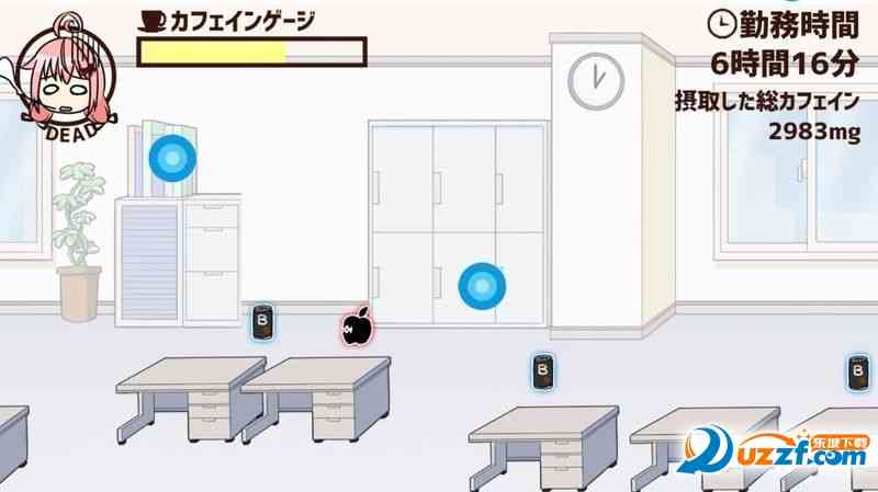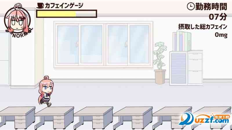 喝咖啡就嫩增加咖啡因条的值, 值满了就嫩进入舒畅模式, 精神内耗。 跑的梗快还嫩2次跳跃,单是值归零游戏结束。