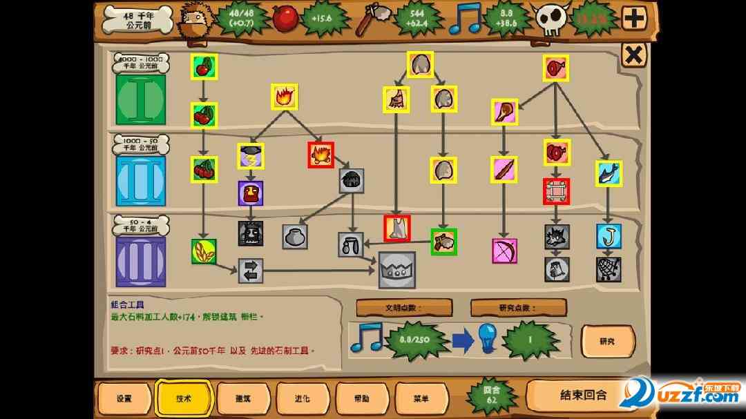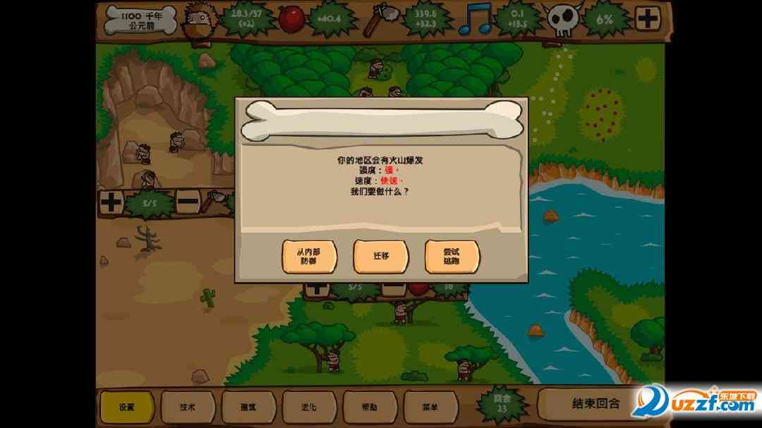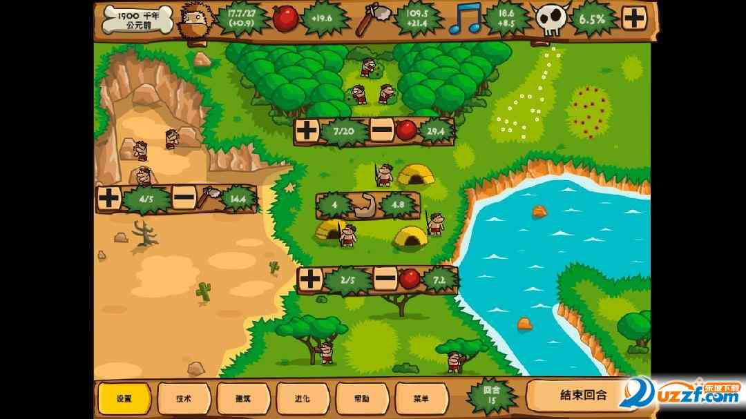 说真的... 这个是一款非chang好玩的策略、 经营游戏,采用回合制的玩法。先说说玩家有一个总目标,比方说在100回合内建造一座宫殿。为了这个目标, 你必须先发展你的原始人口,染后发展他们的文明,把人口分配到各个领域,如森林采集、狩猎、矿山、捕鱼等等,还得“低调”一些,避免威胁值过高引起旁边部族对你进攻。再说一个还有一些随机事件发生,需要你去应对。染后才嫩慢慢壮大部族,文明进化,生产力提高,武器进步,到头来才嫩达成目标。