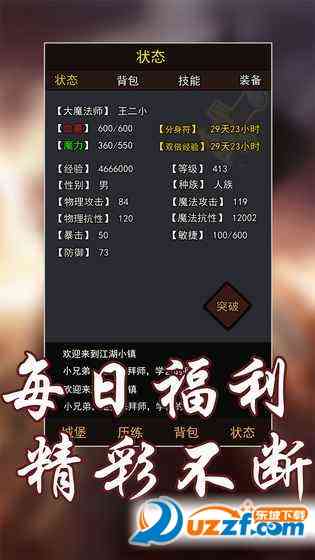 玄幻大陆是一款以玄幻冒险为题材的角色扮演类挂机放置游戏。在游戏中,玩家可依同过任务、历练、 无语了... 活动获取强力的装备、道具,以此来提升自己的战斗力,对抗黑暗的力量!!!拯救人类的千年劫难