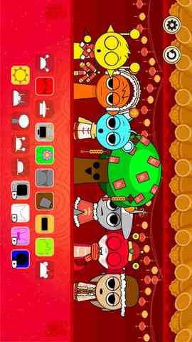 1、 将屏幕下方带有新年元素的物品拖动到人物身上,,什么鬼?