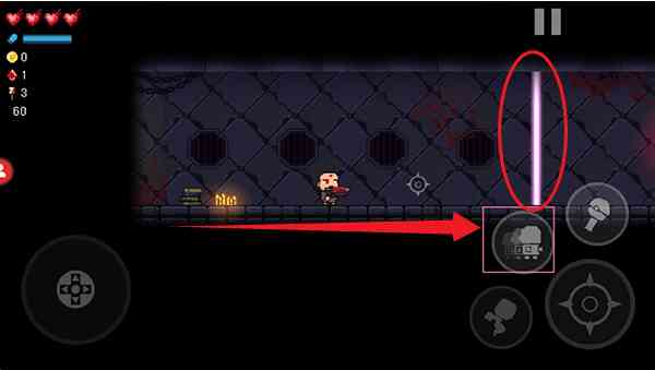 3、碰到右侧的墙壁过不去时点击右侧的锤子图标可依将砸碎过去。