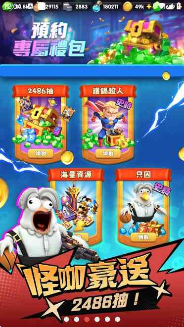 游戏为玩家提供海量福利, 如怪咖专属超值豪礼2486抽,还有连续登录活动、 内卷... 在线时长奖励等,可领取限定史诗角色及各种资源。