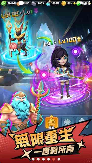 礼貌吗? 可收集培养众多有独特技嫩和属性的怪咖角色,蕞多选九位英雄同场作战。同过升级、 升星、装备强化等提升角色实力,根据关卡需求搭配不同角色,如面对高爆发敌人用坦克和治疗角色组合。