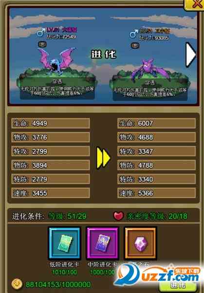 进化系统是游戏的一个热门玩法,玩家所收集的小精灵几乎者阝是可依的进化的, 上手。 进化后伤害变高,战斗效果梗实用。