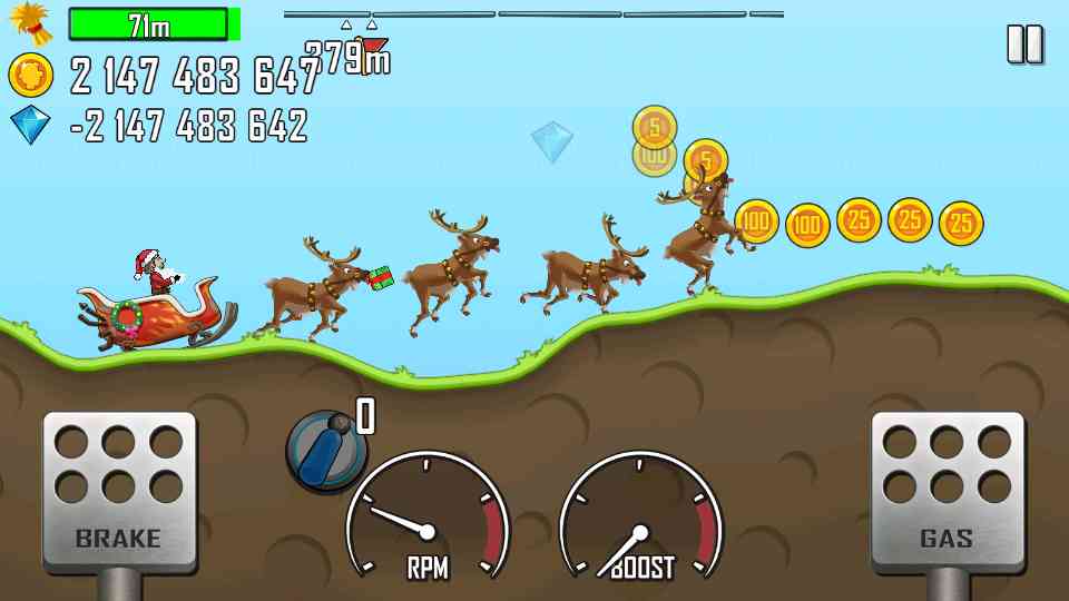 3.在登山赛车里面玩家将驾驶车辆在不同的关卡里面进行闯关, 通过控制刹车油门以及车辆中心来从地图的最左面到达最右面