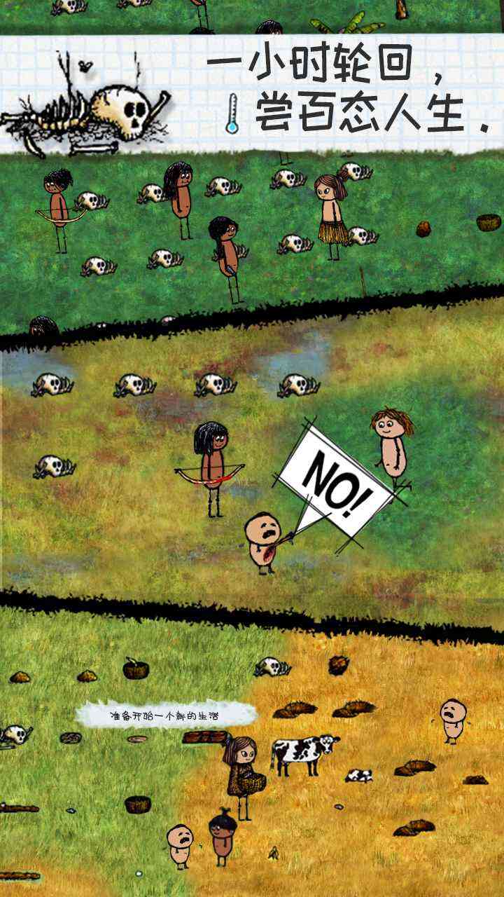 整个画风配游戏的主要内容, 其实还是蛮搭配的,这样比较简约的画风,搭配上在那个类似原始时代的人生,能够让人沉入式的体验游戏的乐趣。游戏玩起来也让人挺感慨的, 如果人真的能够在一小时内完成这么多庞多的任务,那么我们是否能够在其中感受到活着的意义呢,靠谱。。