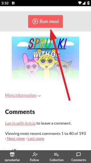 1、 在本页面下载安装该游戏到手机上后点击进入会 不忍卒读。 来到如下图所示的界面点击其中的Run mod即可。