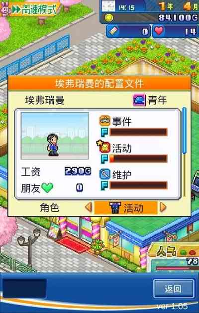 游戏中, 你还可以通过举办游戏交流会来提升玩家水平,玩家的养成其实吧是最重要的内容,等级高的玩家不光可以提升收入,还可以吸引更多玩家,当然不断升级游戏厅的等级,扩建,增加游戏机种类也可以。玩到后期你会发现玩家还可以解锁活动和新的游戏机型。