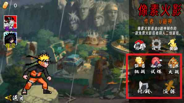 还有另一个版本,就是传统的像素火影版本,可以自行选择想玩哪个版本,你想...。