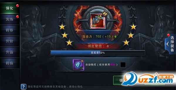 1,可使用神装精华降5阶及以上橙色装备提升为红色神装。