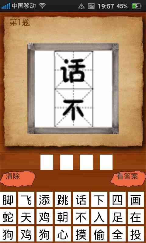 1、 根据一张图片,找出正确的成语,考验自己的知识面挑战自己和好友!