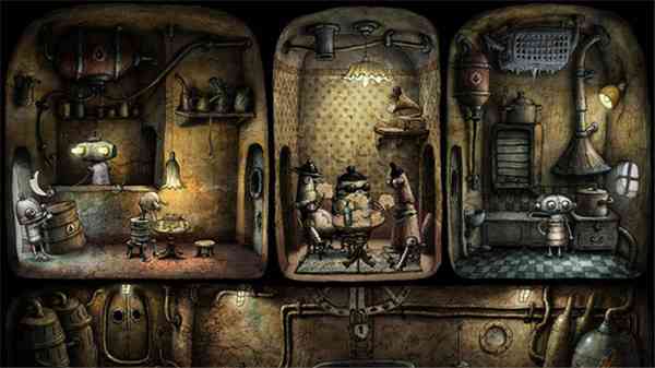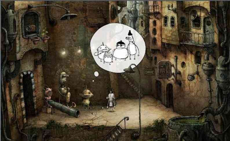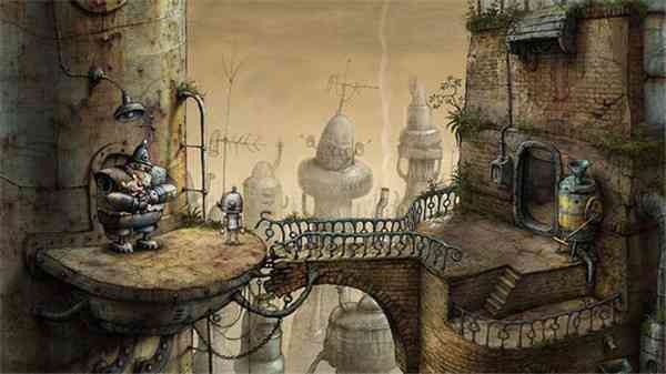 《机械迷城》是一款由捷克独立开发小组Amanita Design设计制作的冒险解谜游戏, 以独特的水墨风格为主,采用2D背景和人物,没有文字对白,游戏时间很长很复杂,复杂到让玩家脑洞大开,游戏画面全部由手工绘制,太离谱了。。