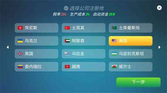 2、点击新游戏后需要输入自己公司的名称,然后选择公司所在地区。