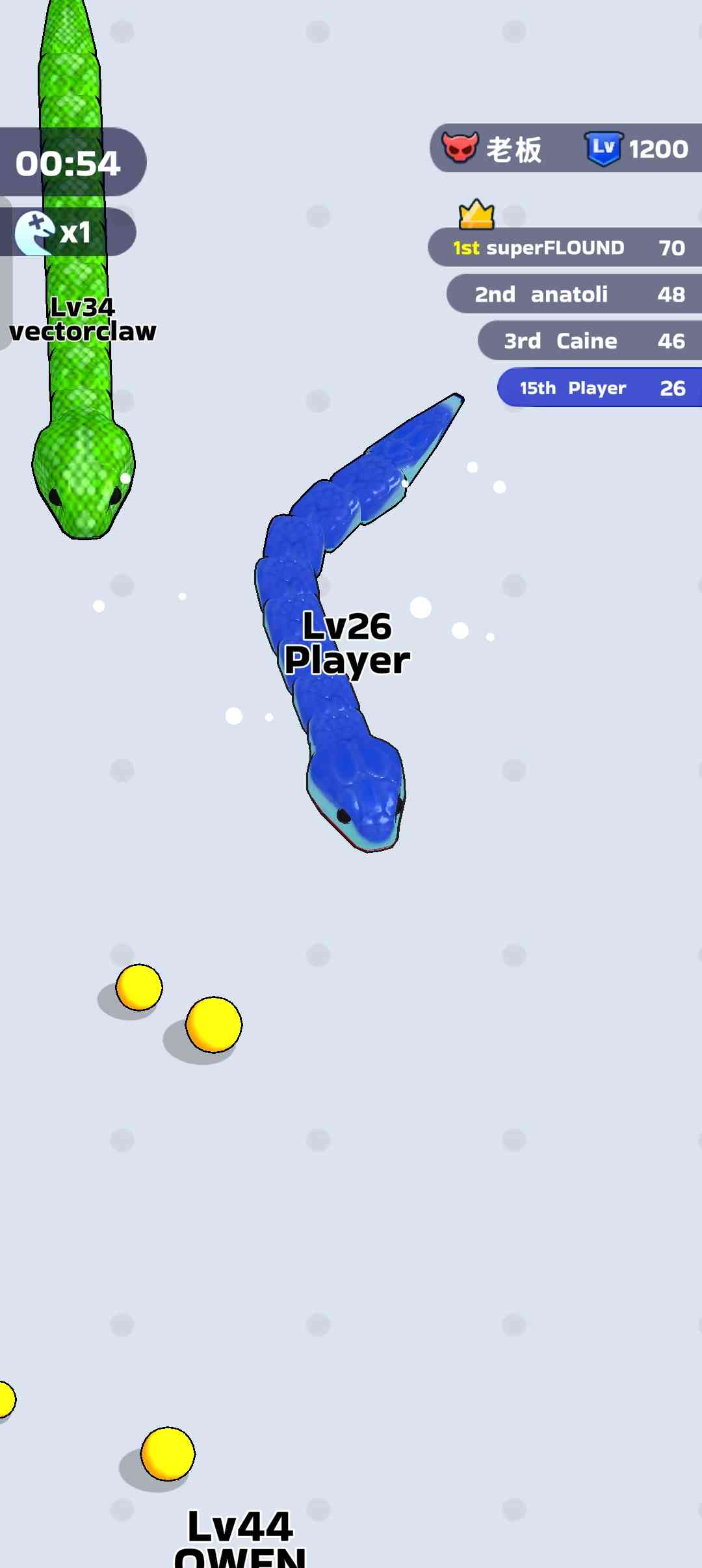 2、 你需要避开一切等级比你大的蛇,一边,你也可以吞噬一切等级别你小的蛇。