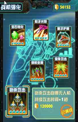 除此之外 雷霆战机III中还设有战机强化系统,共有“宝石强化”、“粒子光炮”、“量子护盾”、“变身攻击”、“僚机支援”、“必杀攻击”6项系统,每一项都可以助您提升战力哦,欧了!。
