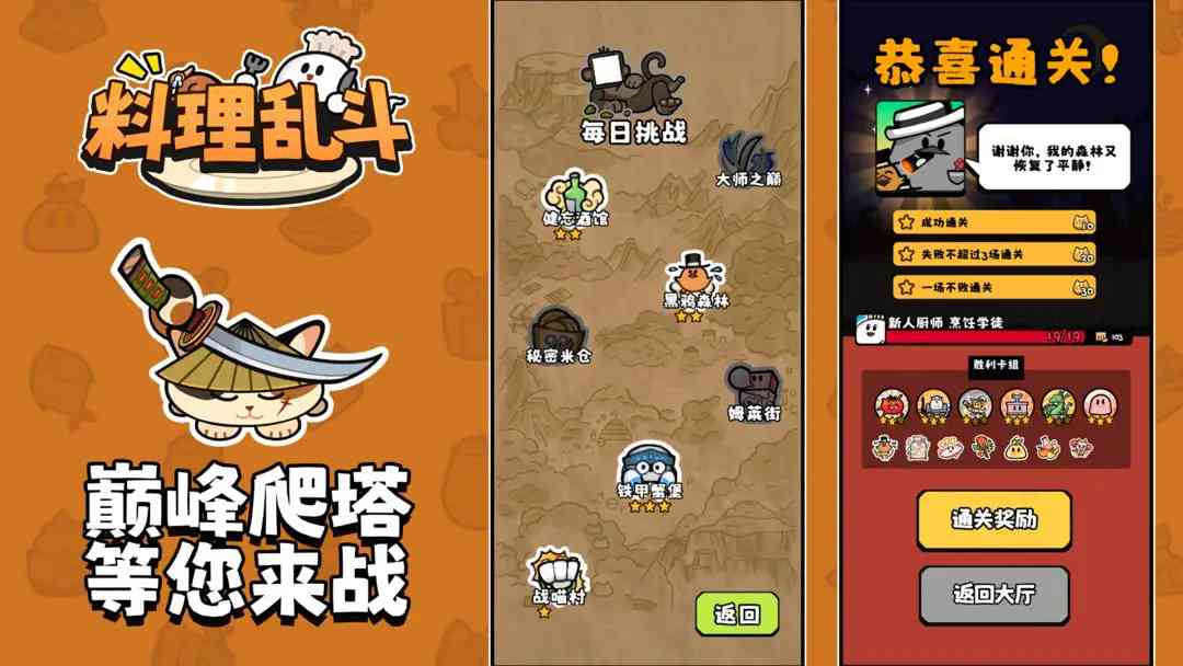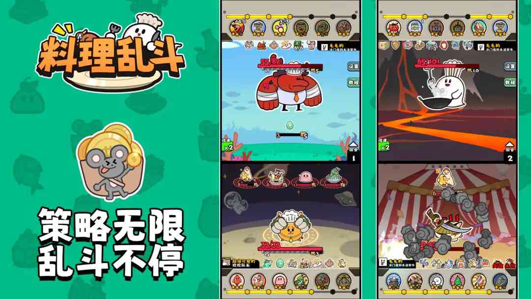 料理乱斗每局战斗都充满随机性,挑战玩家的策略布局与临场应变能力。因为游戏深入,不断解锁更多角色与战术组合,战斗乐趣持续升级。料理乱斗精美的卡通画风搭配轻松休闲的玩法,让玩家在策略博弈中享受别具一格的游戏体验。