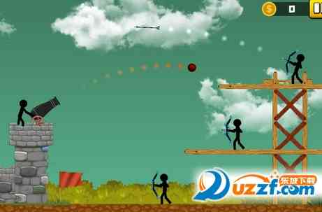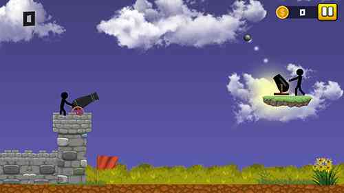 火柴人大炮射击安卓版是一款以火柴人为主角的动作射击类游戏, 玩家帮助火柴人英雄利用大炮打败敌人,记住调整好角度很关键,不靠谱。。