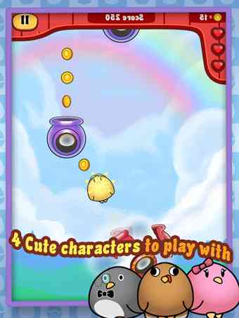 小鸡冒险是一款有趣的休闲益智游戏。我们都知道小鸡是飞不起来的,但是就有这么一只想飞的小鸡。它想出了一个办法,不断的从大炮里面弹射出去,这样就可以往上飞了!而我们要做的就是引导这只可爱的小家伙,不断的挑战最高点。