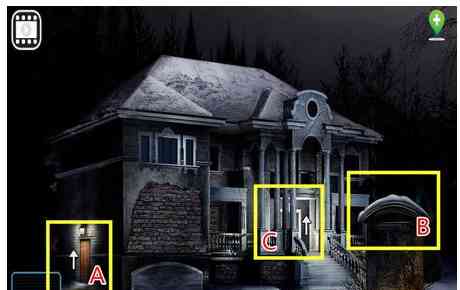 1、开场时我们会站在一所废弃的房子旁。先说说点击方框A,来到侧边门前。